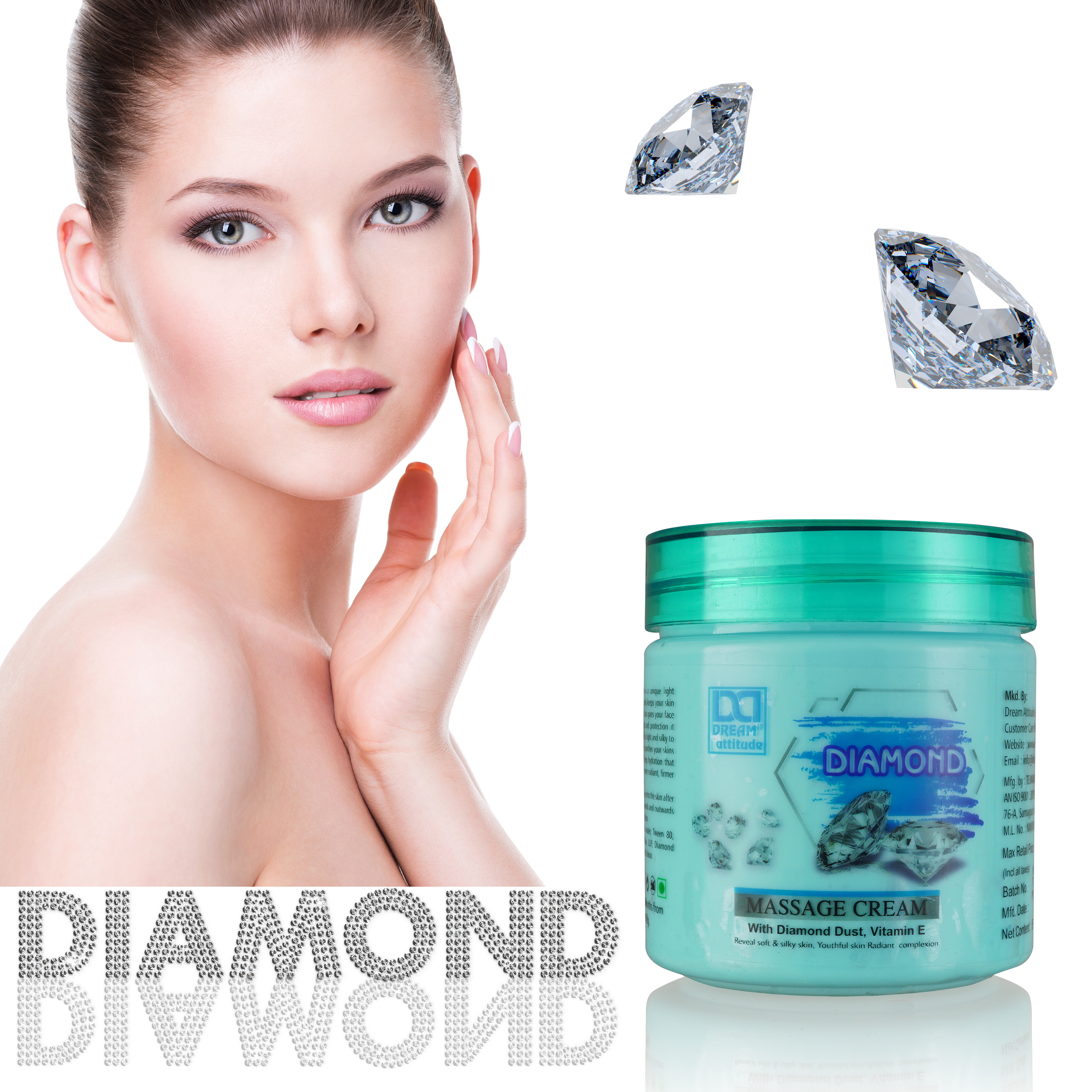 DIAMOND MASSAGE CREAM IS A UNIQUE LIGHT WEIGHT FORMULA THAT NOT ONLY KEEPS YOUR SKIN HYDRATED ALL DAY LONG BUT ALSO GIVES YOUR FACE THE COMPLETE NOURISHMENT AND PROTRECTION IT NEEDS. IT SPREADS EASILY AND IS LIGHT AND SILKY TO TOUCH. THIS UNIQUE CREAM QUINCHES YOUR SKINS THIRST WITH NATURAL WAY. DEEP HYDRATION THAT LASTS ALL DAY GIVING YOU A MORE RADIANT, FIRMER AND SMOOTHER COMPLEXION