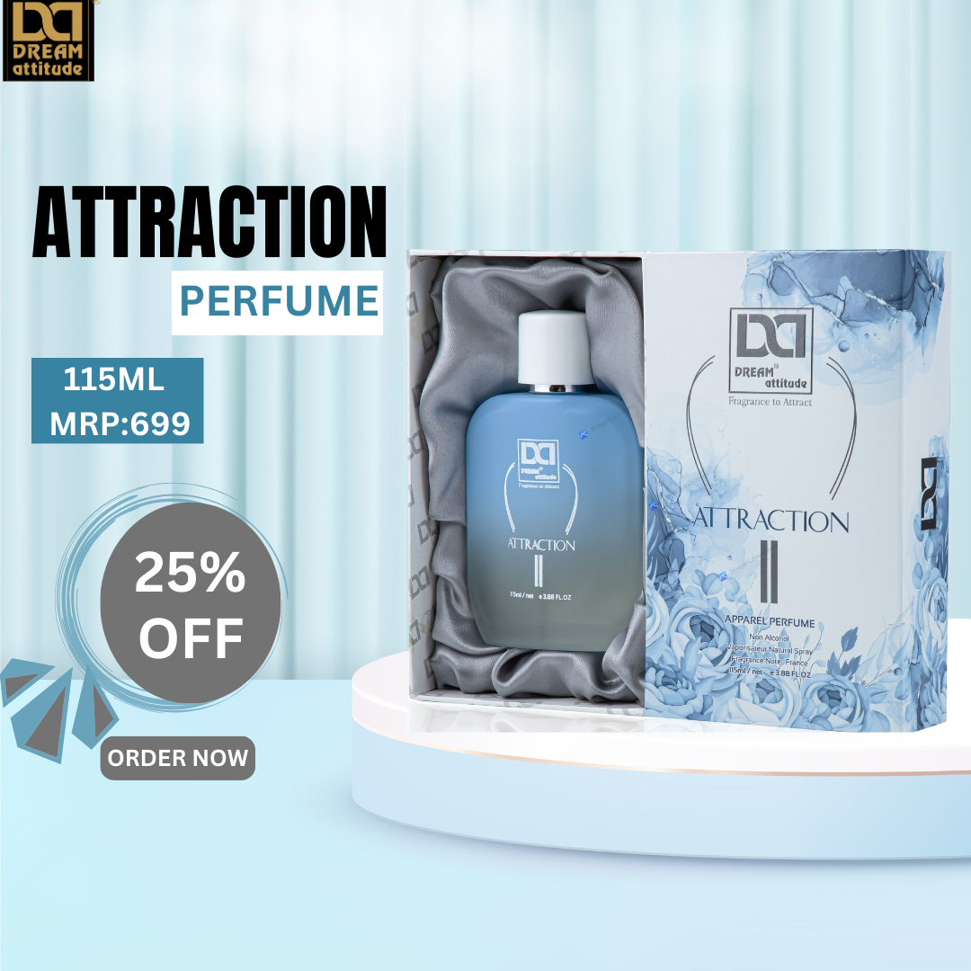 This fragrance is created to exude an air of irresistible charm and magnetism. It typically features a blend of alluring scents that draw people closer. Dream Attitude Attraction Perfume is perfect for those who desire a fragrance that enhances their personal allure and leaves a lasting impression.